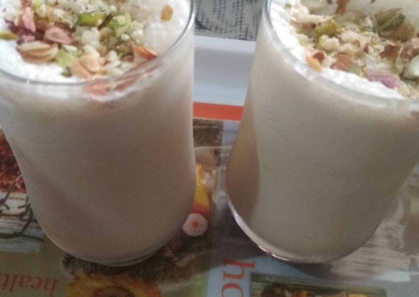- Transfer in to glass,top it off with some grated dry fruits and serve chilled.