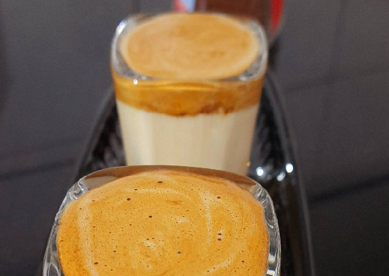 - Now heat the 2 cups milk and add 2 tsp sugar and give a nice boil.Now pour this in a glasses and pour the creamy coffee on the milk and our delicious dzlgona coffee shots are ready to serve.Enjoy.