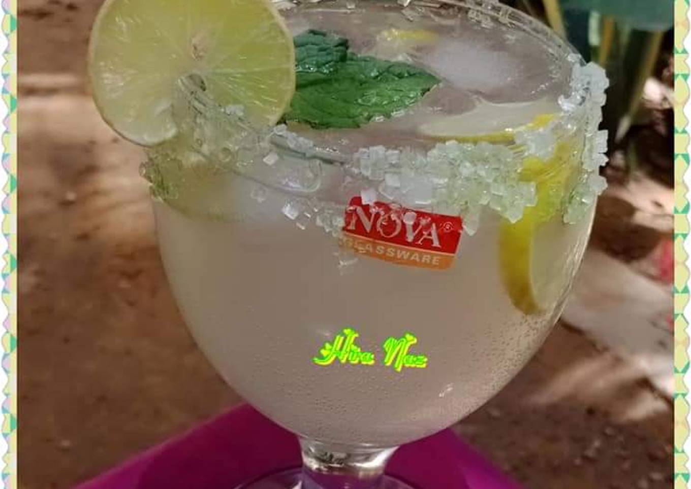 - Mix lemon juice, black salt and add sprinkling drink, sprite/7Up, mix well and lemon slice as ur required.