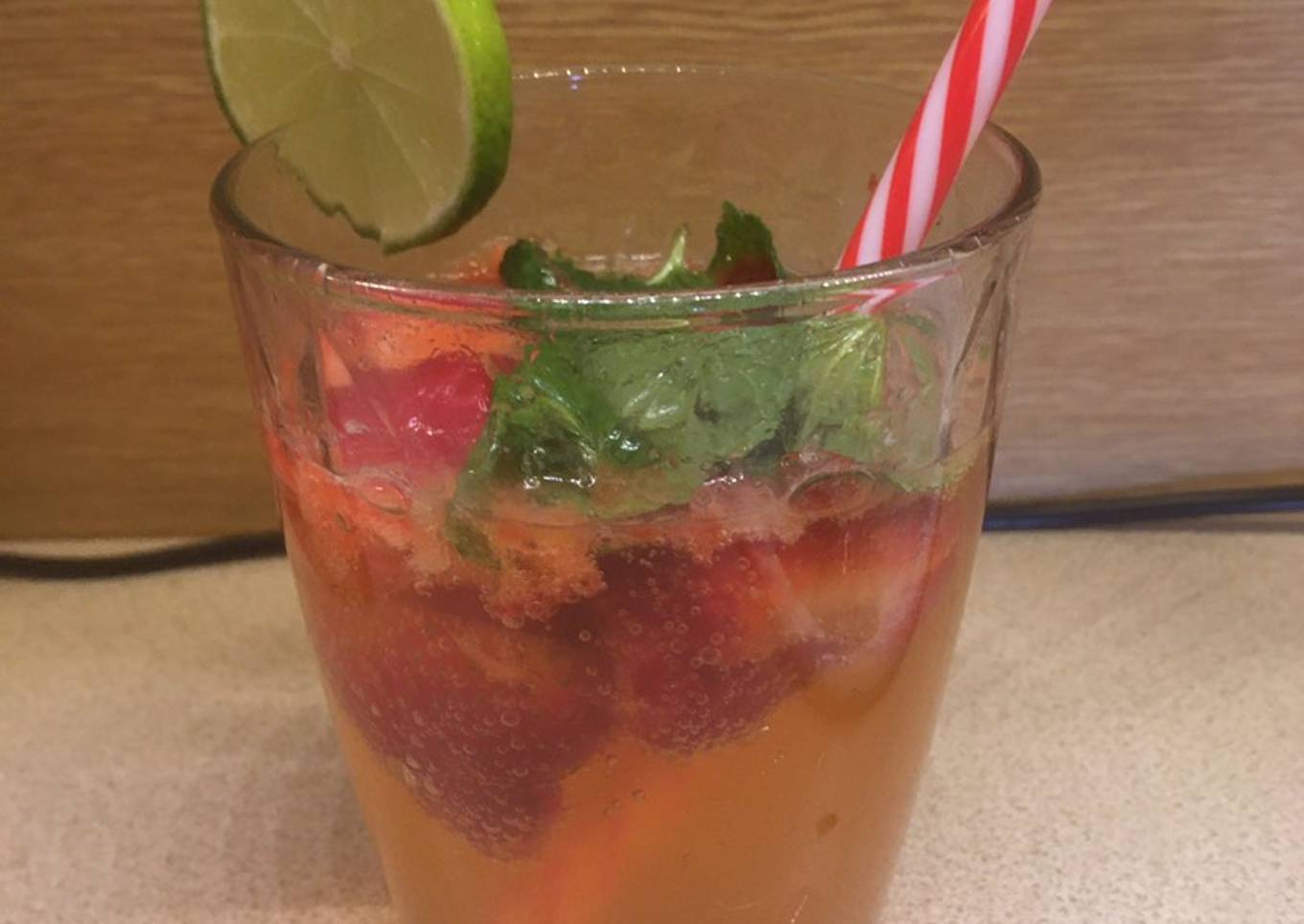 - Put washed strawberries and mint leaves into a pitcher and crush it with a wooden spoon. Add lime juice and sprite, stir it and serve. Enjoy 😋