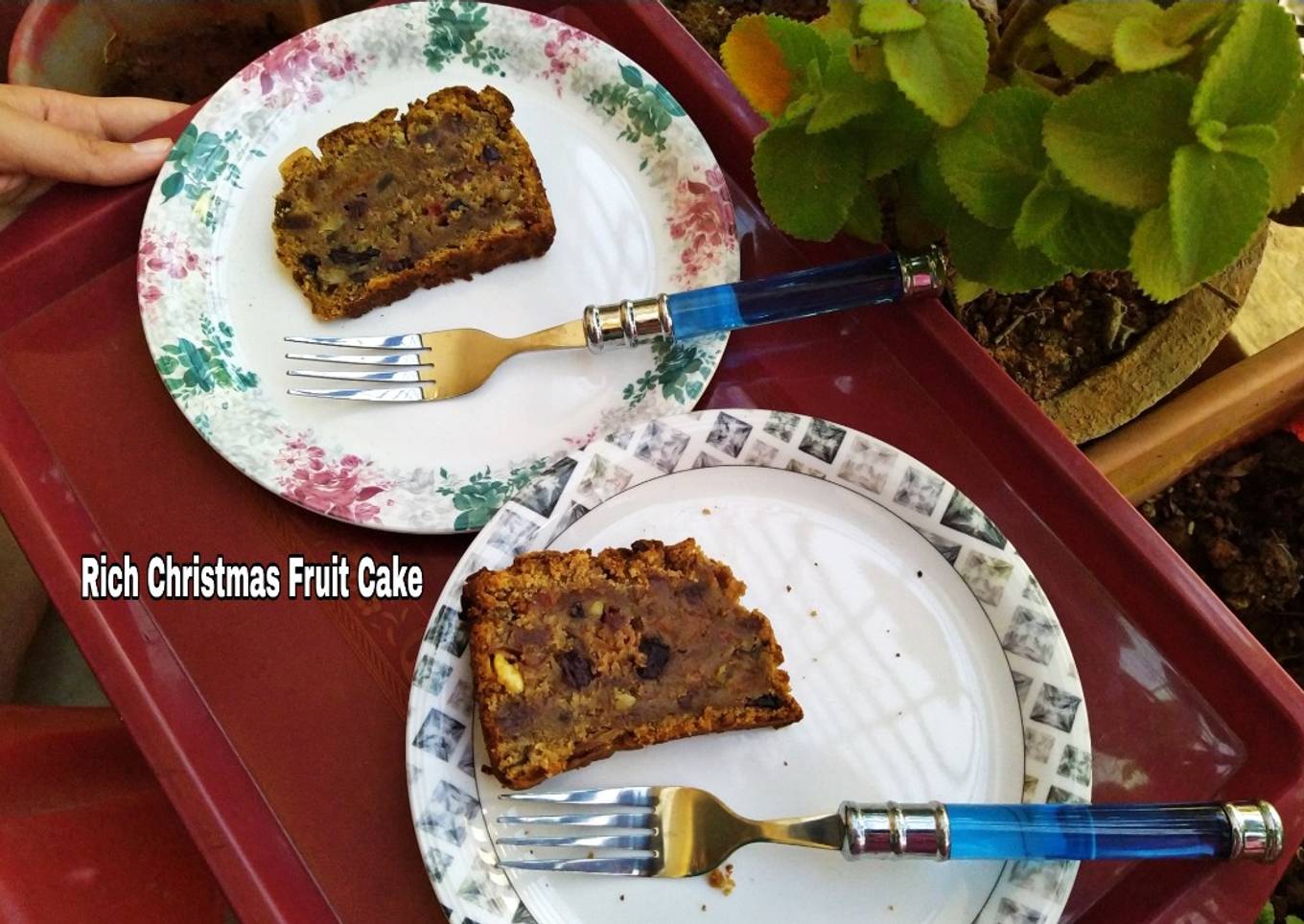 Eggless Rich Christmas Fruit Cake is a delicious, aromatic cake, perfect for a celebration. This is a rich fruit cake as the dried fruits add are 3 times more than the whole wheat flour.