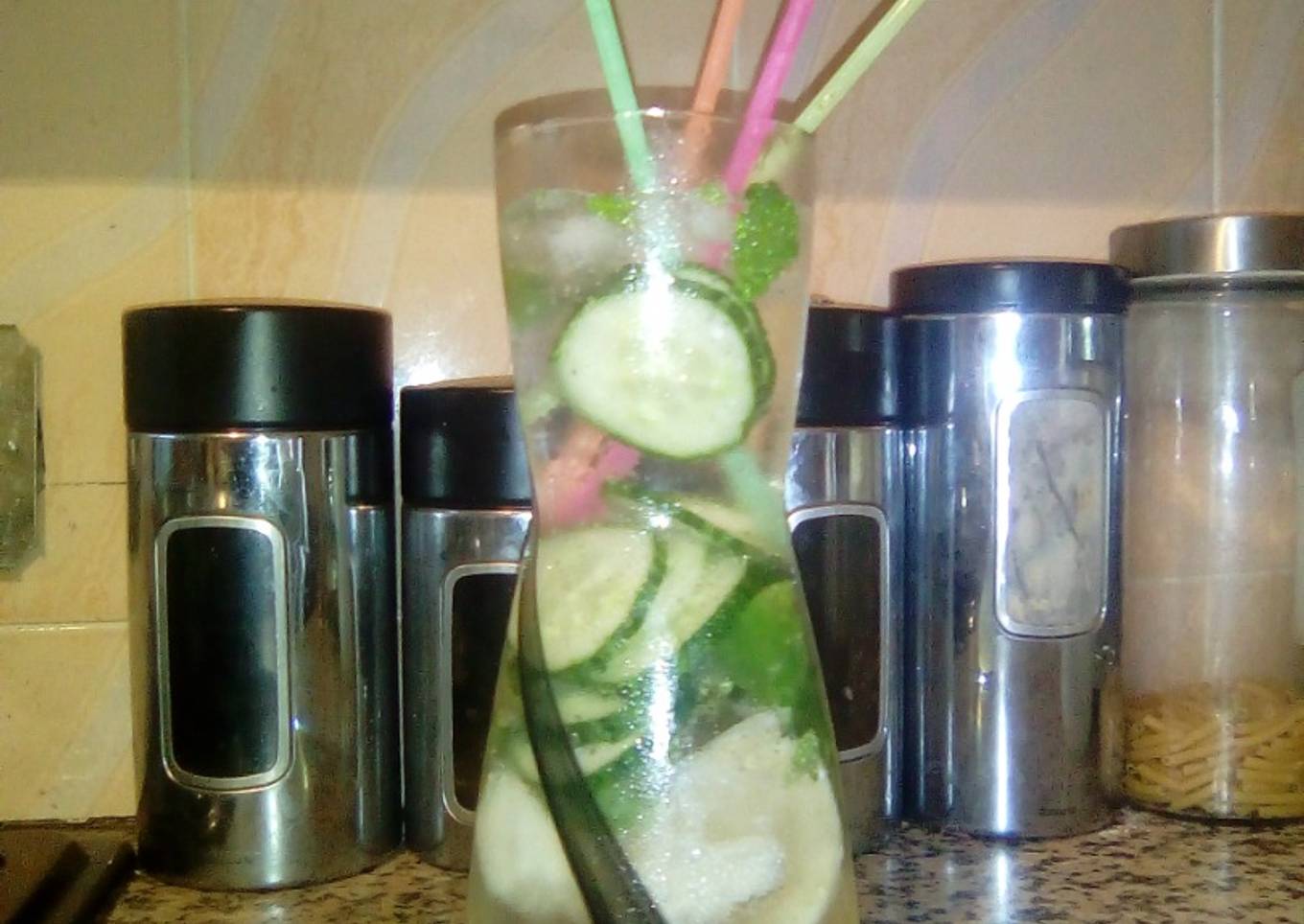 - In a jug add glass of lemon water, cucumber, mint leaves, lemonade and crushed ice. Ready to serve
