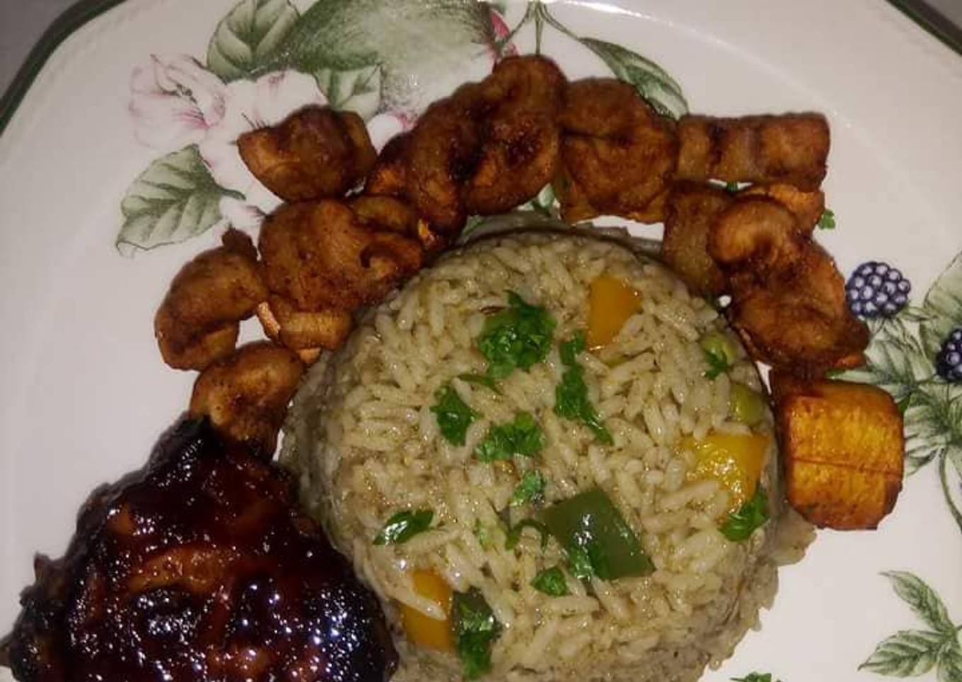 Native rice with plantain and turkey